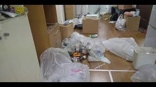 部屋はワンルームでトイレや風呂以外にはゴミが積まれており部屋だけには置ききらず、ベランダにもゴミが山積みになっていました。弁当殻などは洗われていなかったので臭いもしていました。それらを大まかに分け、雑誌や新聞なども紙ごみとしてまとめてトラックに積み込みました。サービスで最後にベランダと居間は簡単に清掃し完了しました。後からそのお客様が口コミも書き込んでくださっていました。